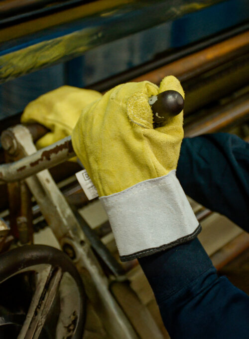 - La tercer capa será un guante cobertor de cuero de vaqueta. Este guante otorga al usuario protección en caso de arc flash y además protege mecánicamente al guante dieléctrico, evitando que este se dañe.