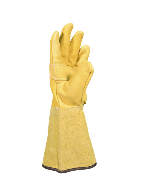 - La tercer capa será un guante cobertor de cuero de vaqueta. Este guante otorga al usuario protección en caso de arc flash y además protege mecánicamente al guante dieléctrico, evitando que este se dañe.