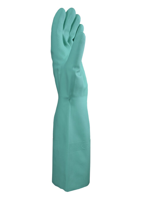 Guante de Acrilo Nitrilo Pesado Verde Flocado Largo Total 40 cm. Espesor 0.5 mm. Talle 10