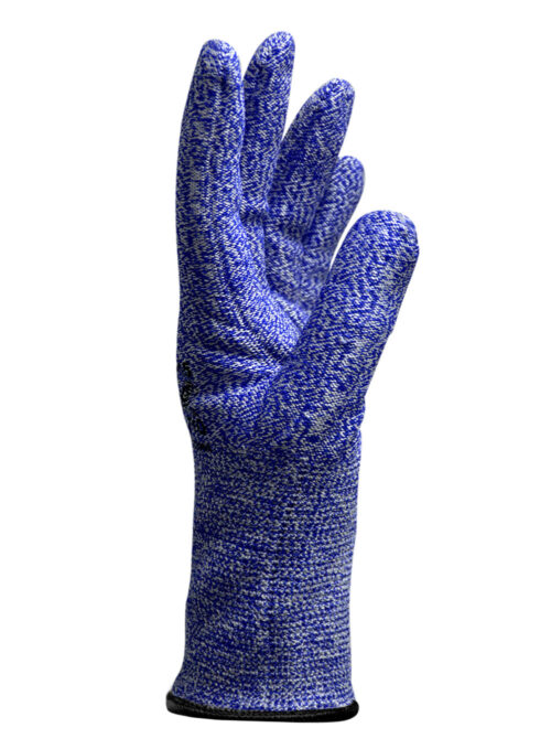 Construido con hilado de HPPE, fibra de polietileno de alto rendimiento, tiene una resistencia a la tensión 15 veces superior a la del acero (sobre una base peso por peso), compuesto de UHMWPE, Spandex y Nylon que asegura niveles de protección al corte máximos.