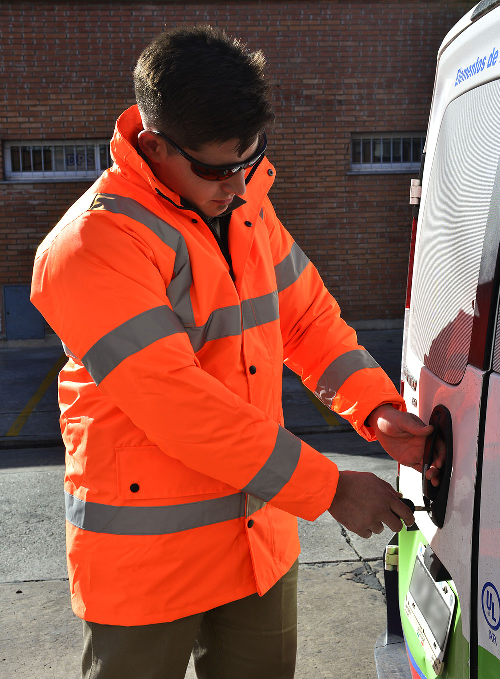 Campera de frio Naranja Fluo con aplicaciones reflectivas Talle 3XL