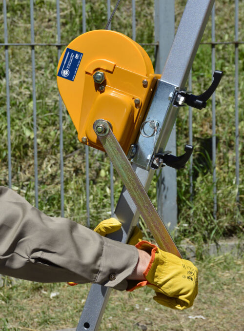 Malacate para trípode con cable de acero hasta 20m, mosquetón de 25mm de apertura, Capacidad 120 Kg.