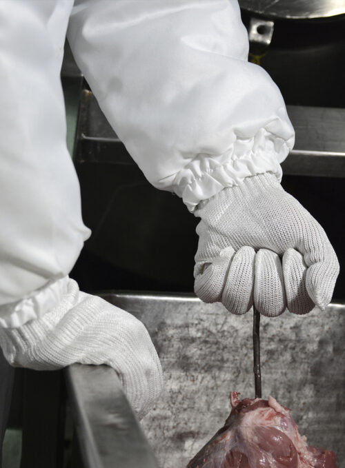 Lana + HPPE: Un diminuto hilo de acero es incorporado al tejido del guante para garantizar una mejor protección contra el corte sin sacrificar la sensibilidad al tacto.