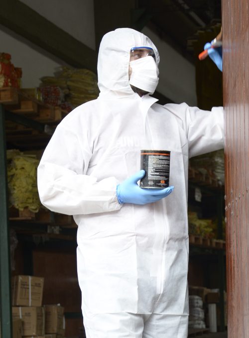 Equipo de protección química, tipo 5 y 6 que ofrece protección contra partículas sólidas transportadas por el aire y agentes infecciosos. Posee un rendimiento de protección limitado contra pulverizaciones ligeras, aerosoles líquidos o salpicaduras de baja presión y bajo volumen.