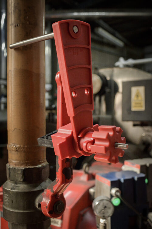 El brazo permite asegurar la manija de la válvula en posición cerrada o abierta y dejarla inmovilizada.