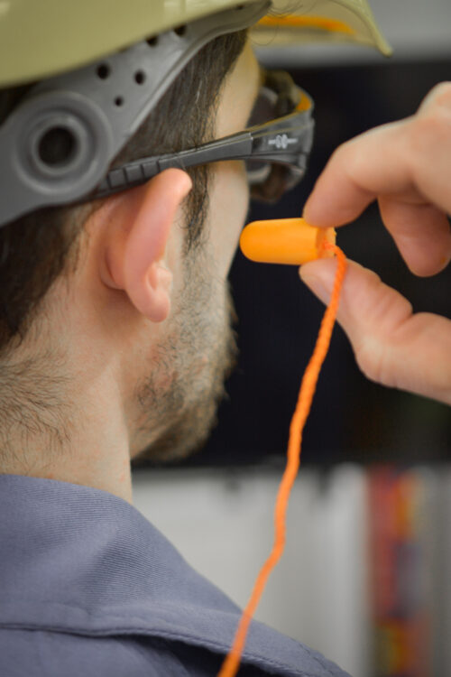 Protector auditivo endoaural descartable de poliuretano.